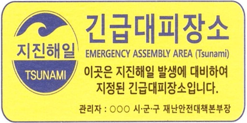 우리 동네 주변 공원, 학교 등이 지진 및 지진 해일 대피장소로 지정된 경우 표지판을 설치하고 있다.